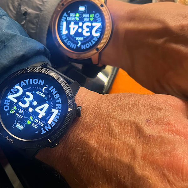 Nous avons pu nous apercevoir que grace aux bulles d’air présentes dans la glace, âgée de plusieurs centaines d’années, et au capteur multi band dernière génération, le signal GPS de notre smartwatch THEIA II, environ 15 mètres sous la couche de glace, permet tout de même de s’orienter. La cartographie de la montre reste très performante.
