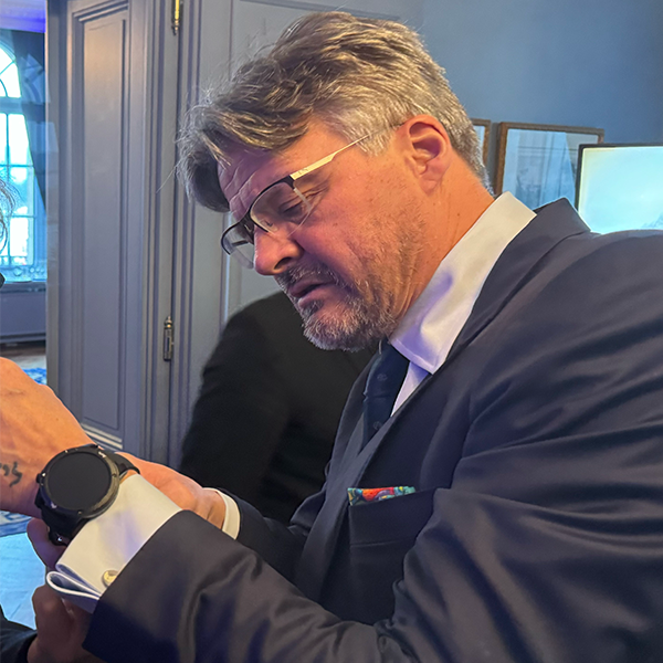 Depuis le troisième trimestre 2025, nous travaillons en étroite collaboration avec l'association européenne des neuro-chirurgiens , plus particulièrement avec le professeur Karl Schaller, chef de service aux Hôpitaux Universitaires de Genève. Avec l'Université de Genève (faculté des sciences) nous avons pu contrôler l'exactitude des données de santé (rythme cardiaque, taux d'O2 dans le sang, accéléromètre). Nous avons effectué un test comparatif en collaboration avec la Professeure Katarzyna Wac sur les données "santé, bien être". De plus, nous avons sécurisé toutes les données récoltées sur un serveur physique basé à Genève. Nous avons pu également présenter les avantages de notre montre connectée à Vienne, Autriche lors du congrès annuel EANS. En cette occasion, nous avons pu également confirmer le côté "Lifestyle" de notre montre. Au porté, en mode urbain, la montre est très élégante.