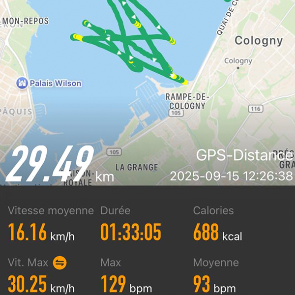 Nous sommes une équipe de passionnés de sports, plus particulièrement des activités dites de glisse. Le windfoil, est une activité qui procure des sensations inégalables sur l'eau. Impression de voler, de perdre le contact avec l'eau. Nous avons aussi pu constater l'exactitude des données GPS en rade de Genève, sur le lac Léman. Equipé d'une aile de 1050 cm2 et d'une voile de 7,50 m2, avec quelques noeuds de vent (environ 12 noeuds) et quelques appuis de pumping, le foil vous soulève hors de l'eau. La vitesse se stabilise alors vers 17,5 noeuds. Vous pouvez convertir la vitesse km/h en noeuds marins depuis l'application AIRN CONNECT.